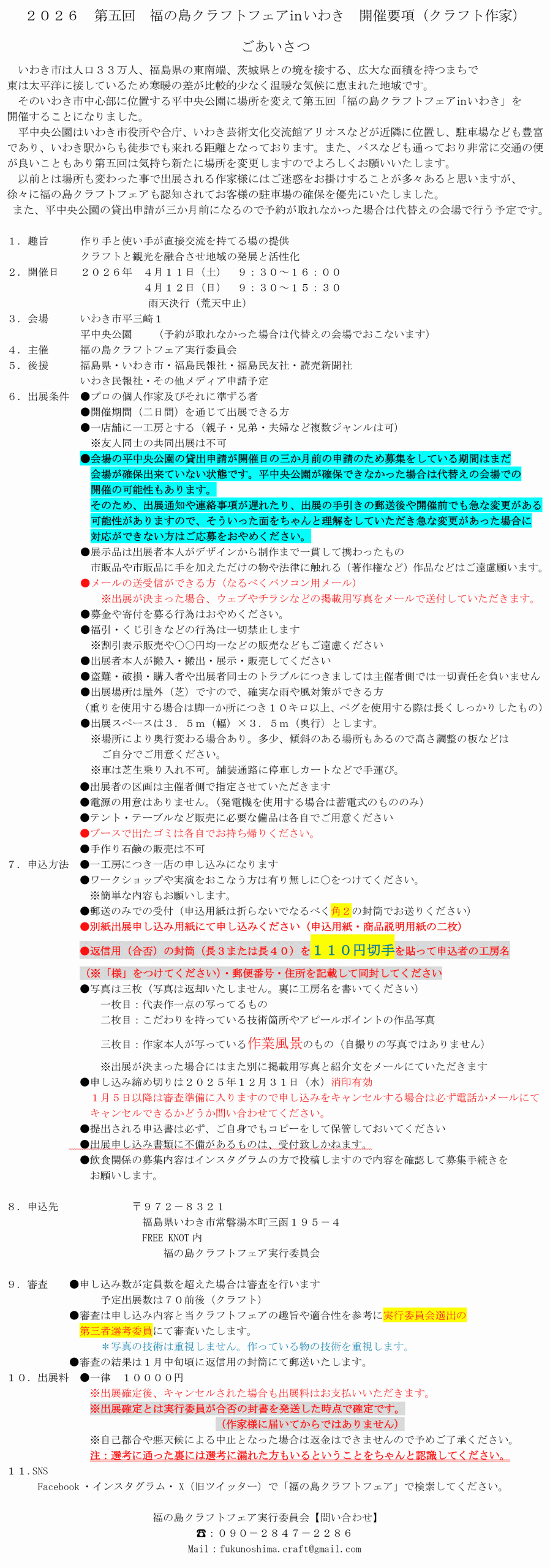 『2025第五回福の島クラフトフェア in いわき 開催要項』をPDFで読む